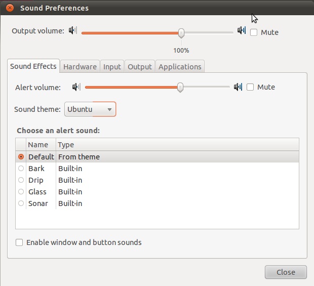 - System->Preferences->Sound,